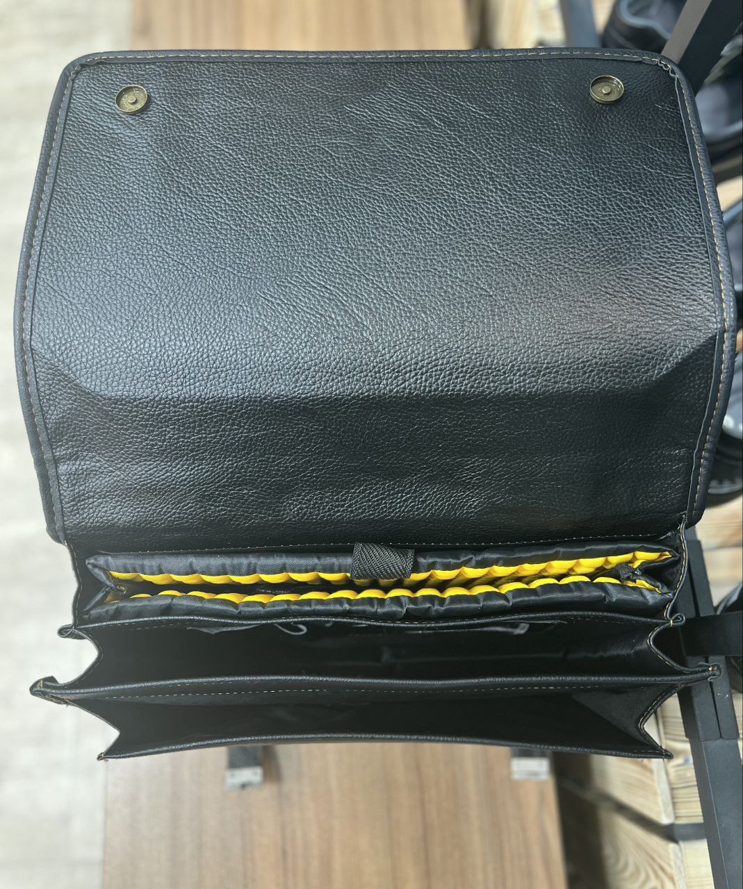 جنس چرم صنعتی مرغوب این کیف دوام و مقاومت بالایی دارد و ظاهر شیک و حرفهای آن مناسب استفاده روزمره است.