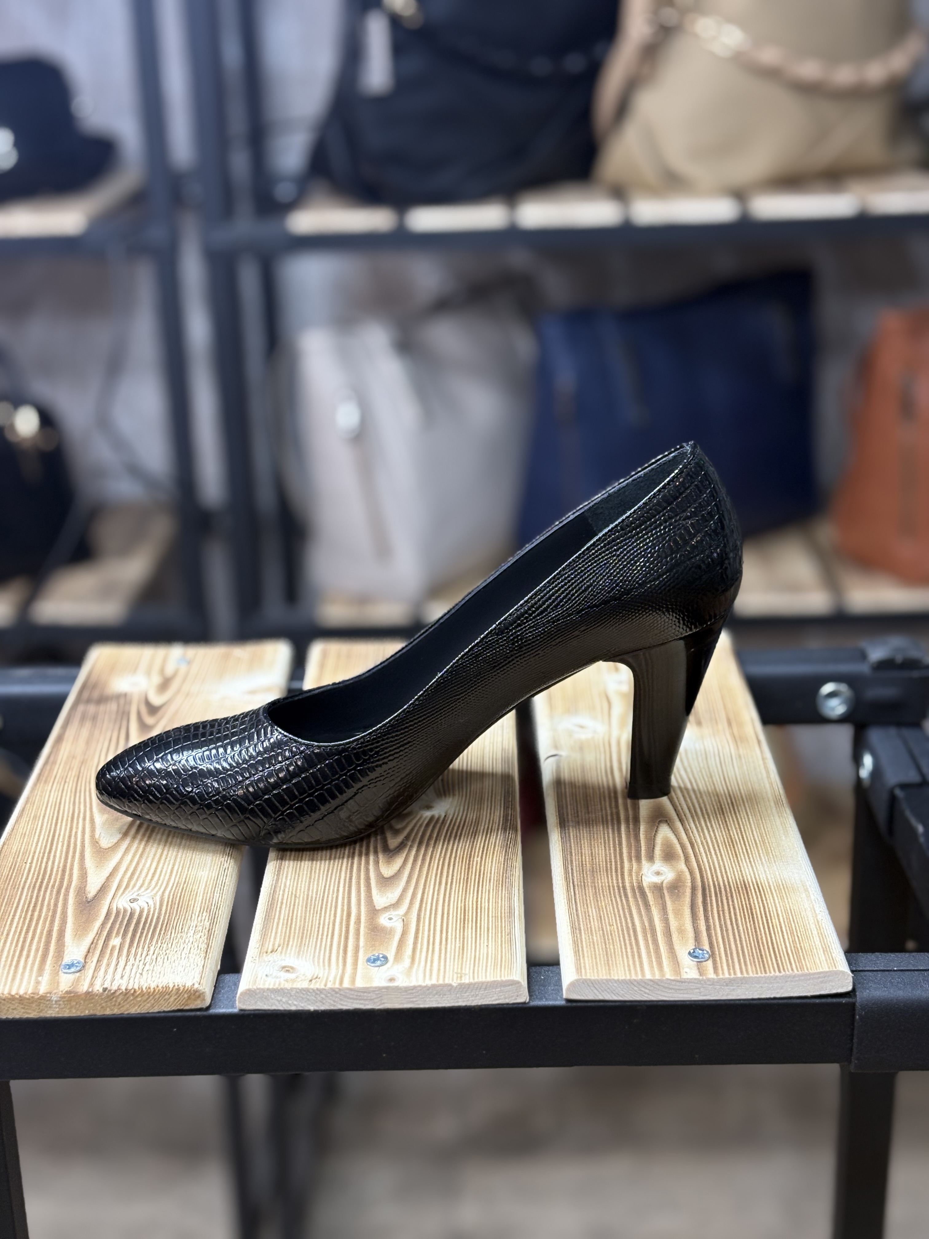کفش زنانه مجلسی پاشنه پنج سانتی چرم طبیعی گاوی طرح لیزارد